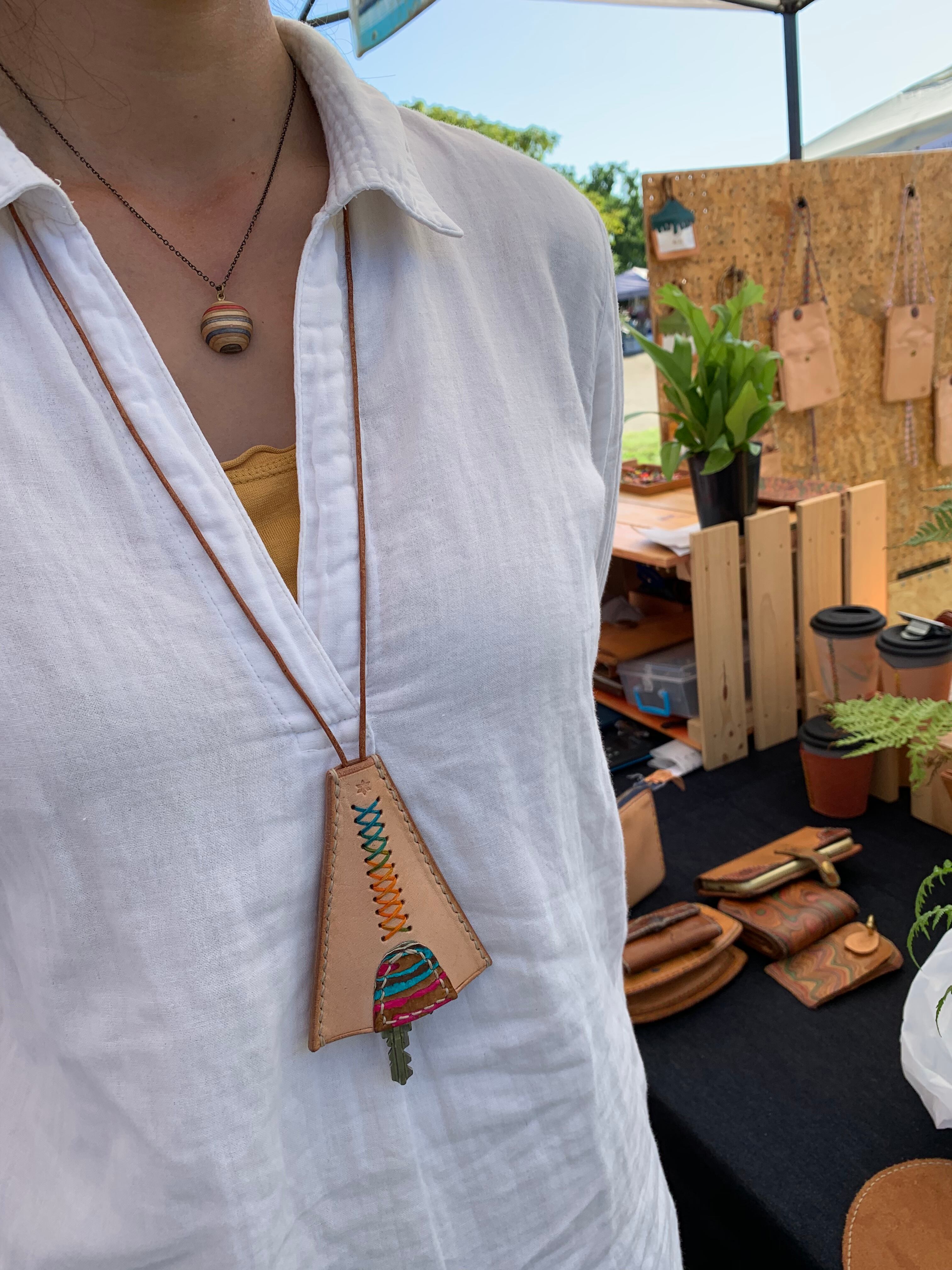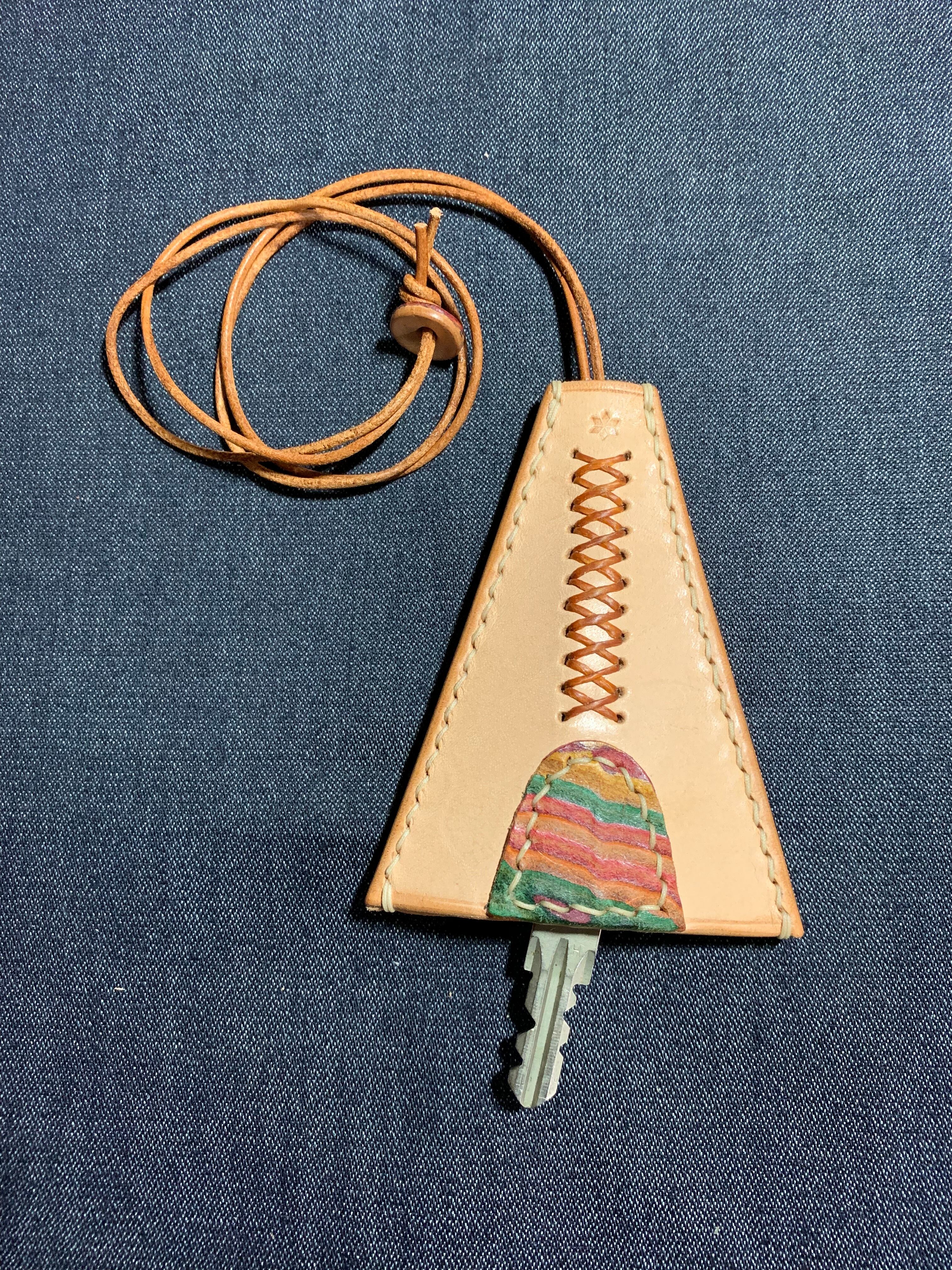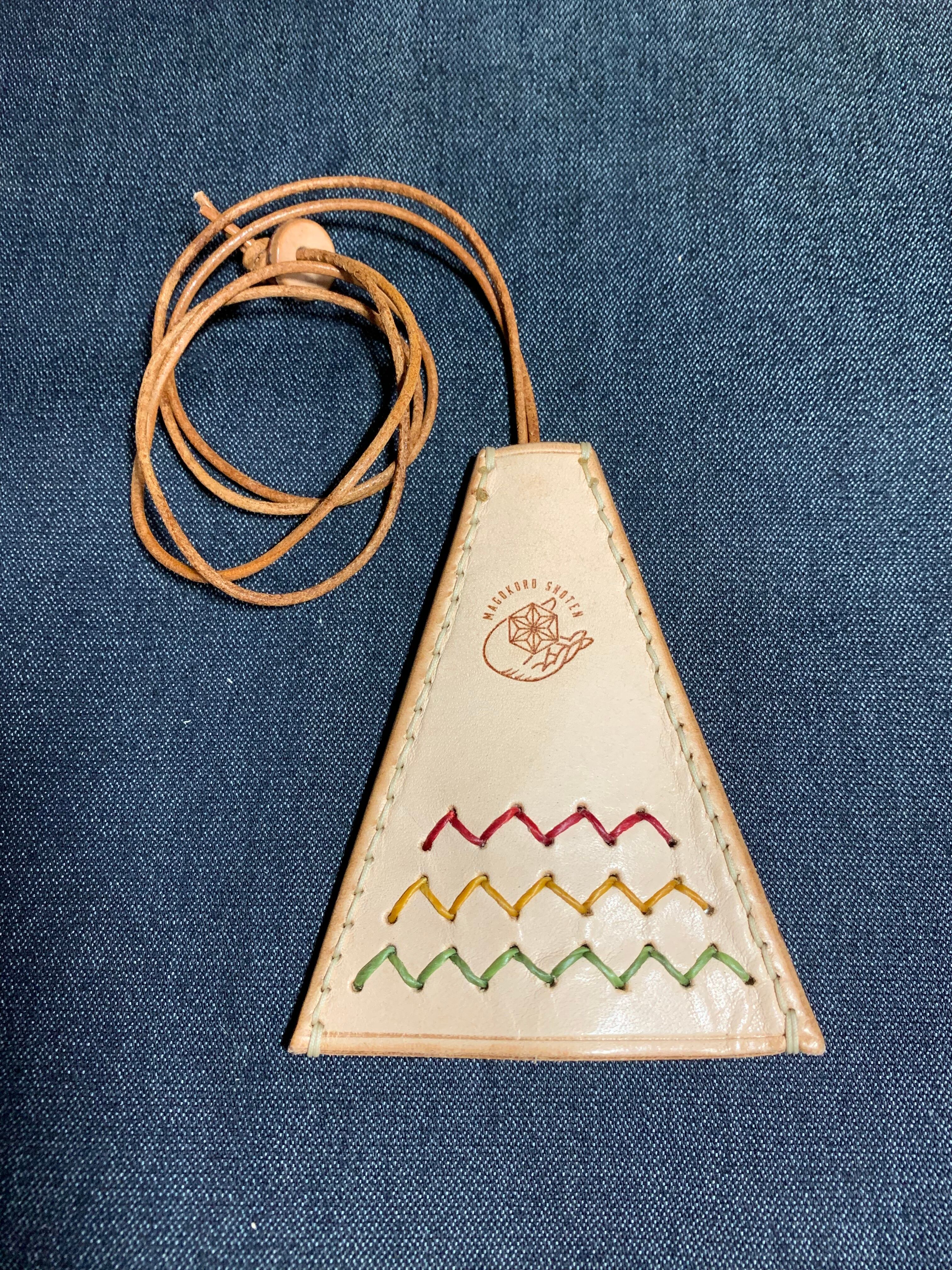 主に牛のヌメ革を使用し、ティピーの入り口部分にはスキモレザーを使用しています。