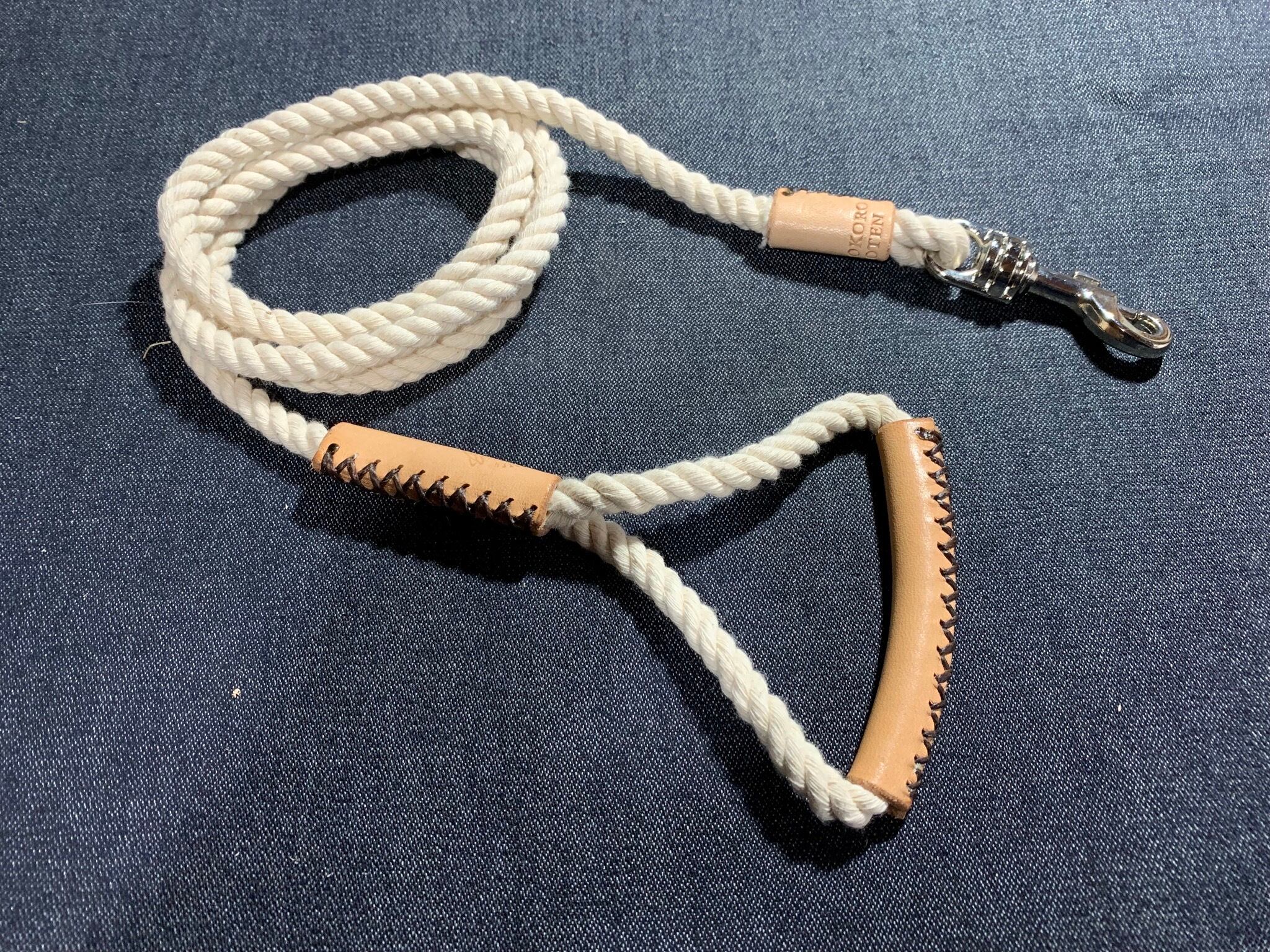 持ち手とロープの編み込み部分はヌメ革を使用しています。