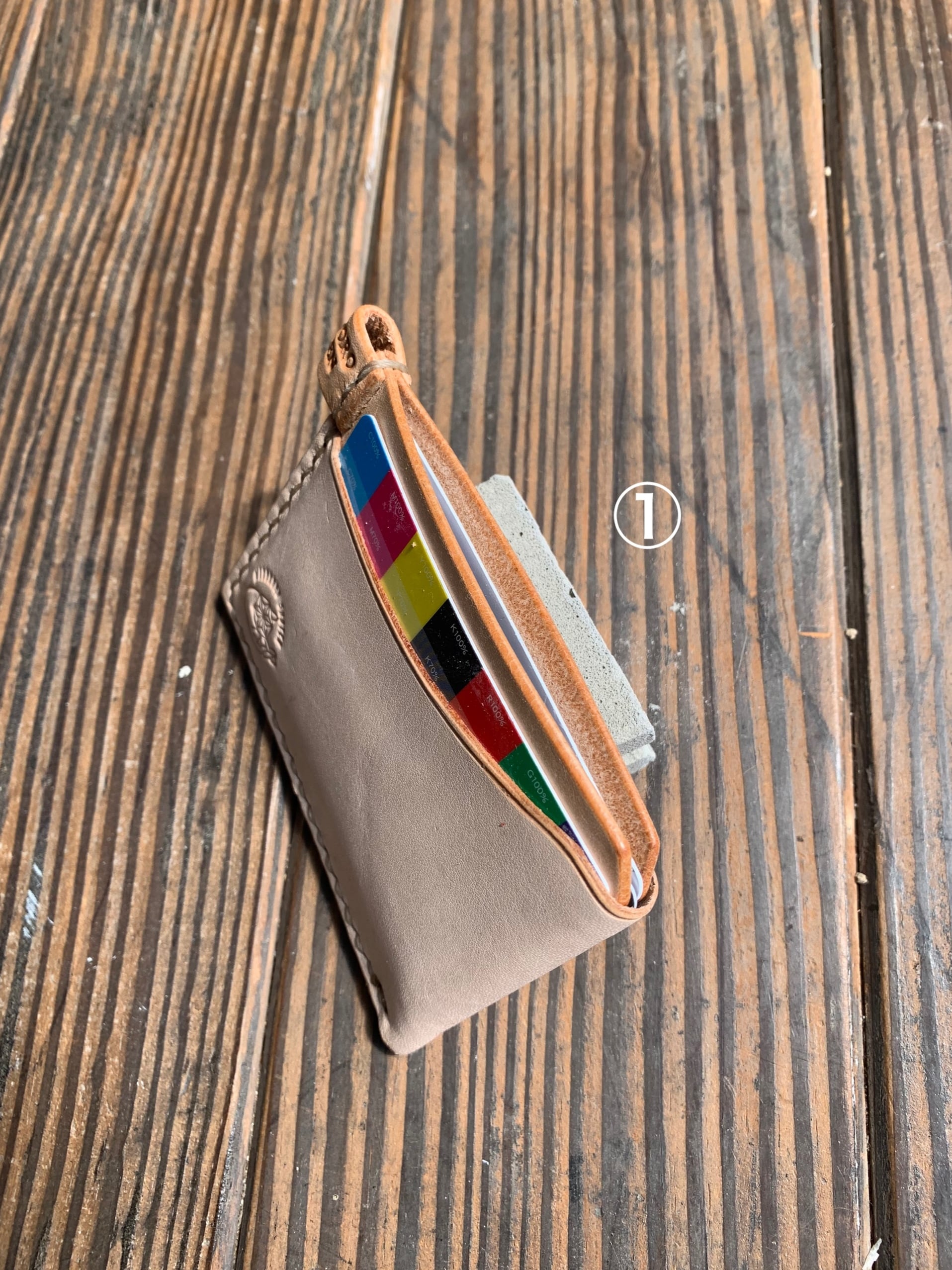 シンプルなヌメ革のパスケースです。