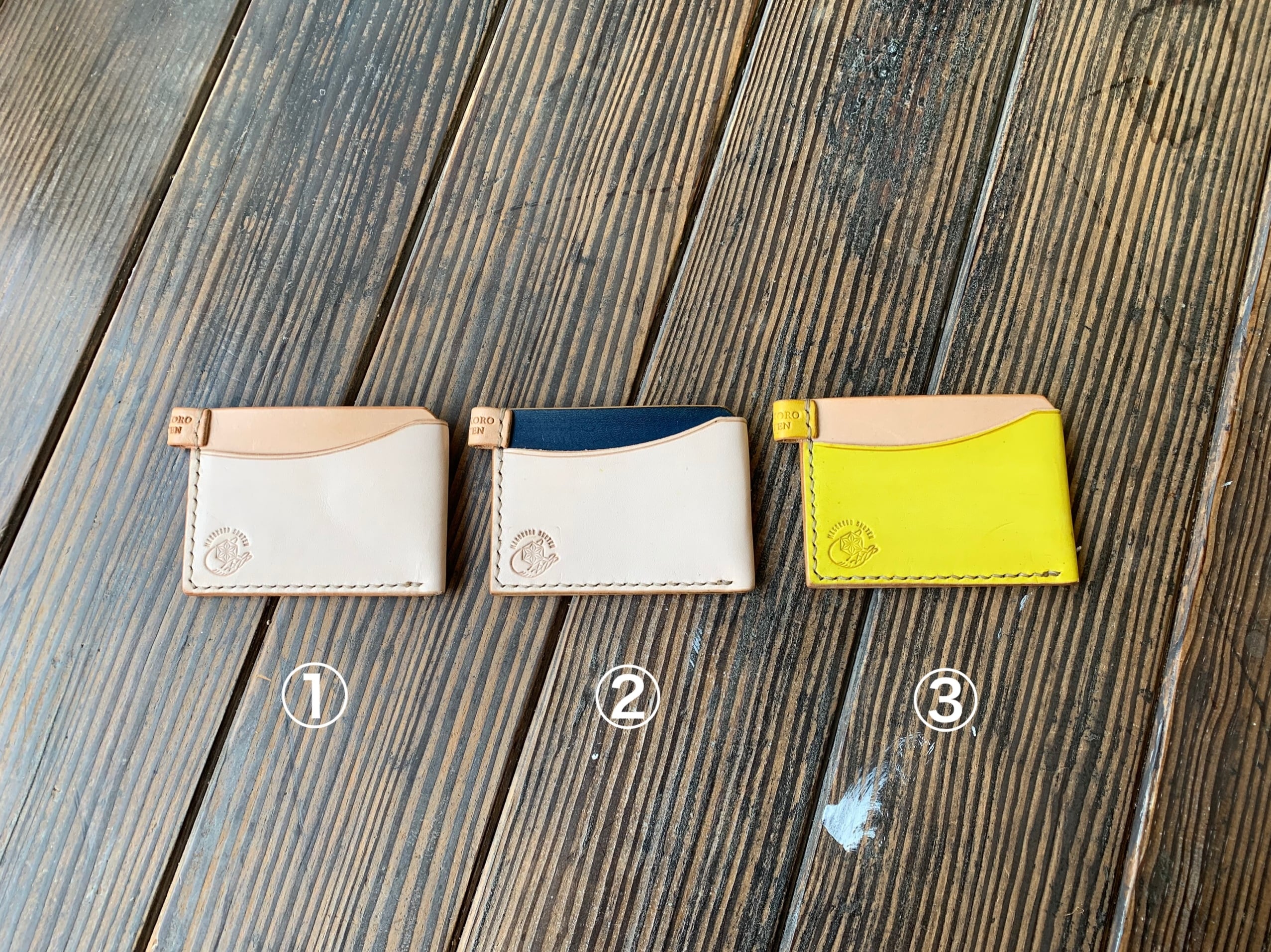また、②紺と③黄色は染色してあるため、使い始めは色移りする可能性がありますのでご注意ください。
