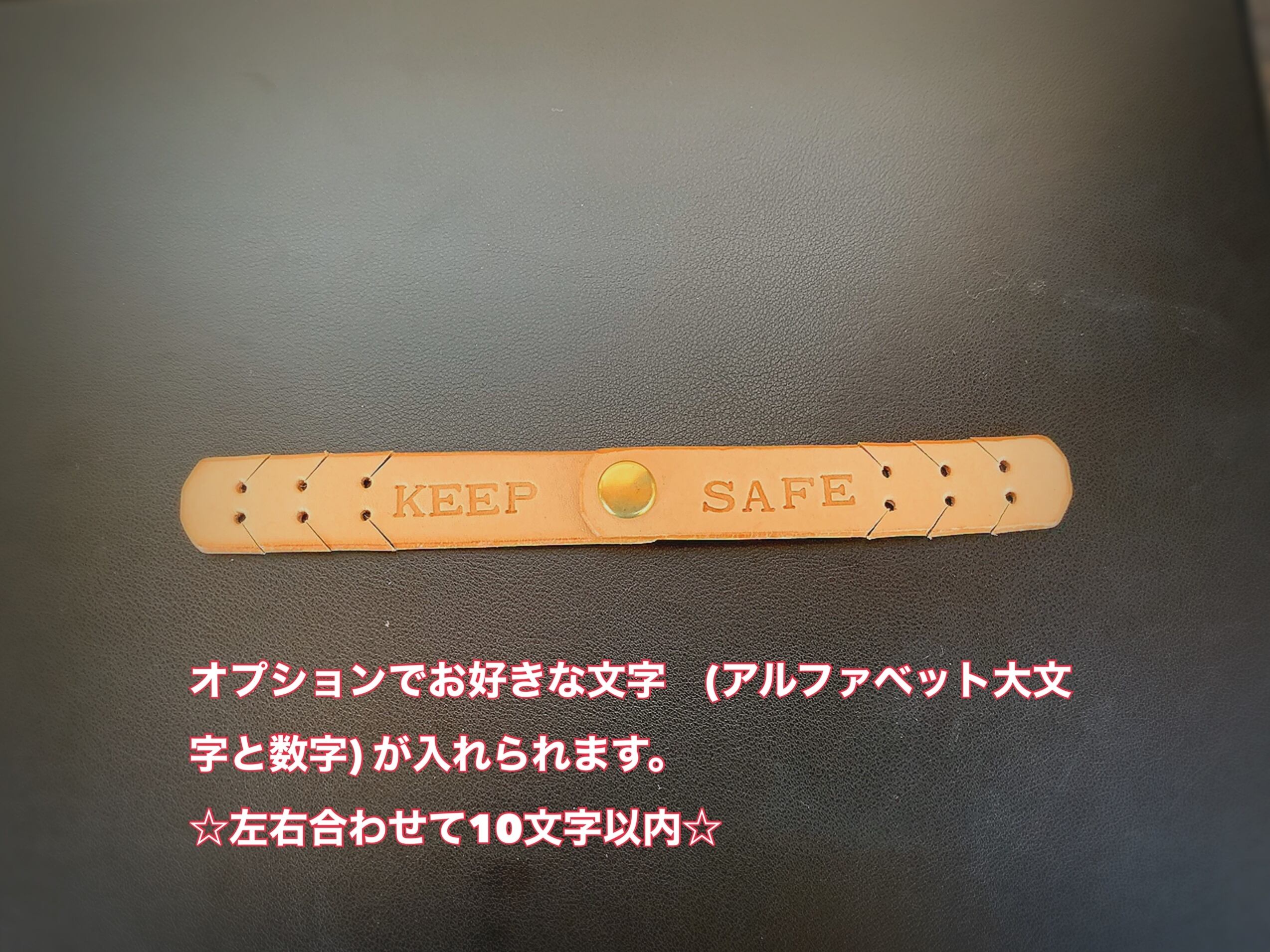 バンドの左右合わせて10文字以内、片側5文字まで入れられます(スペースも1文字とします)。
