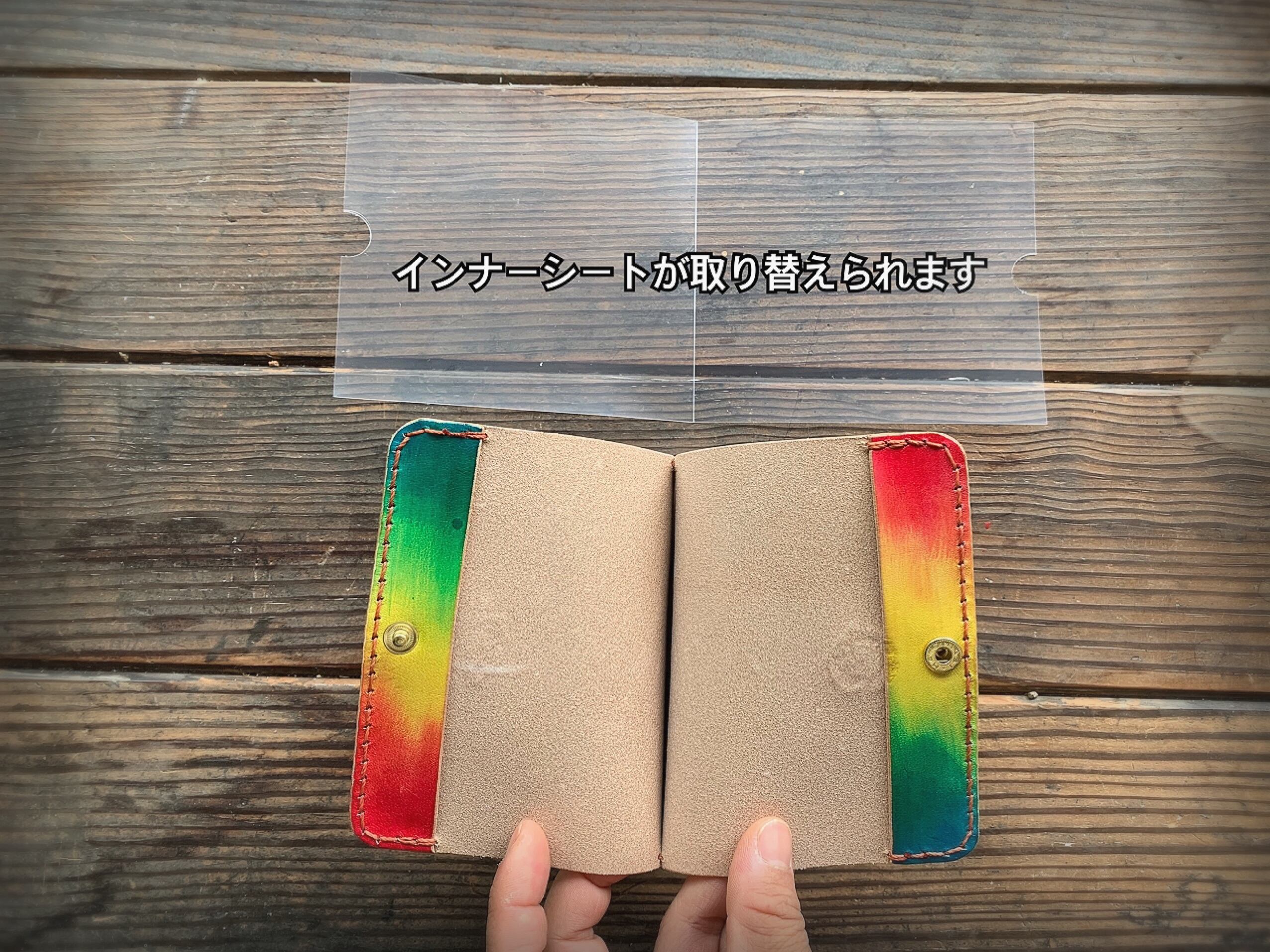 写真3枚目の様にケース内側のボタン付近の革の色を無料で0.ナチュラルカラー+写真5枚目の10色+グラデーションカラーからお選びいただけます。