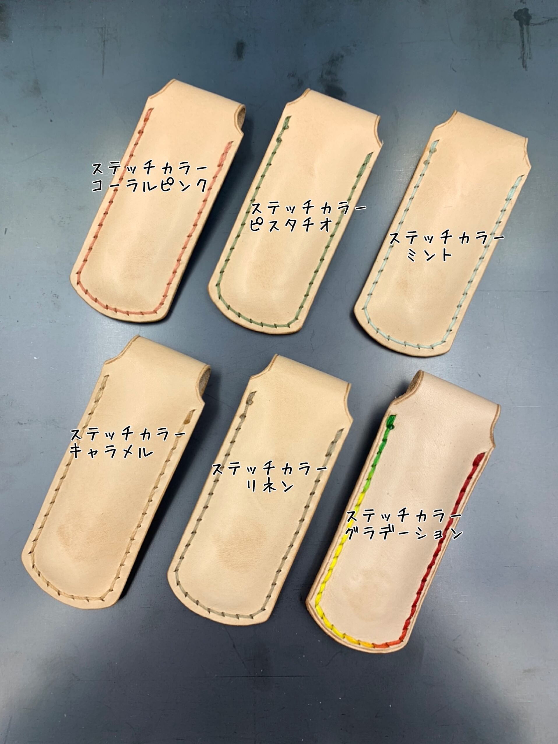 革のカラーが11色、ステッチカラーが19色ありますので、お好きな色の組み合わせをお選びください。