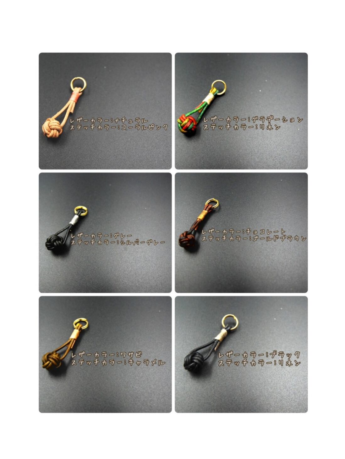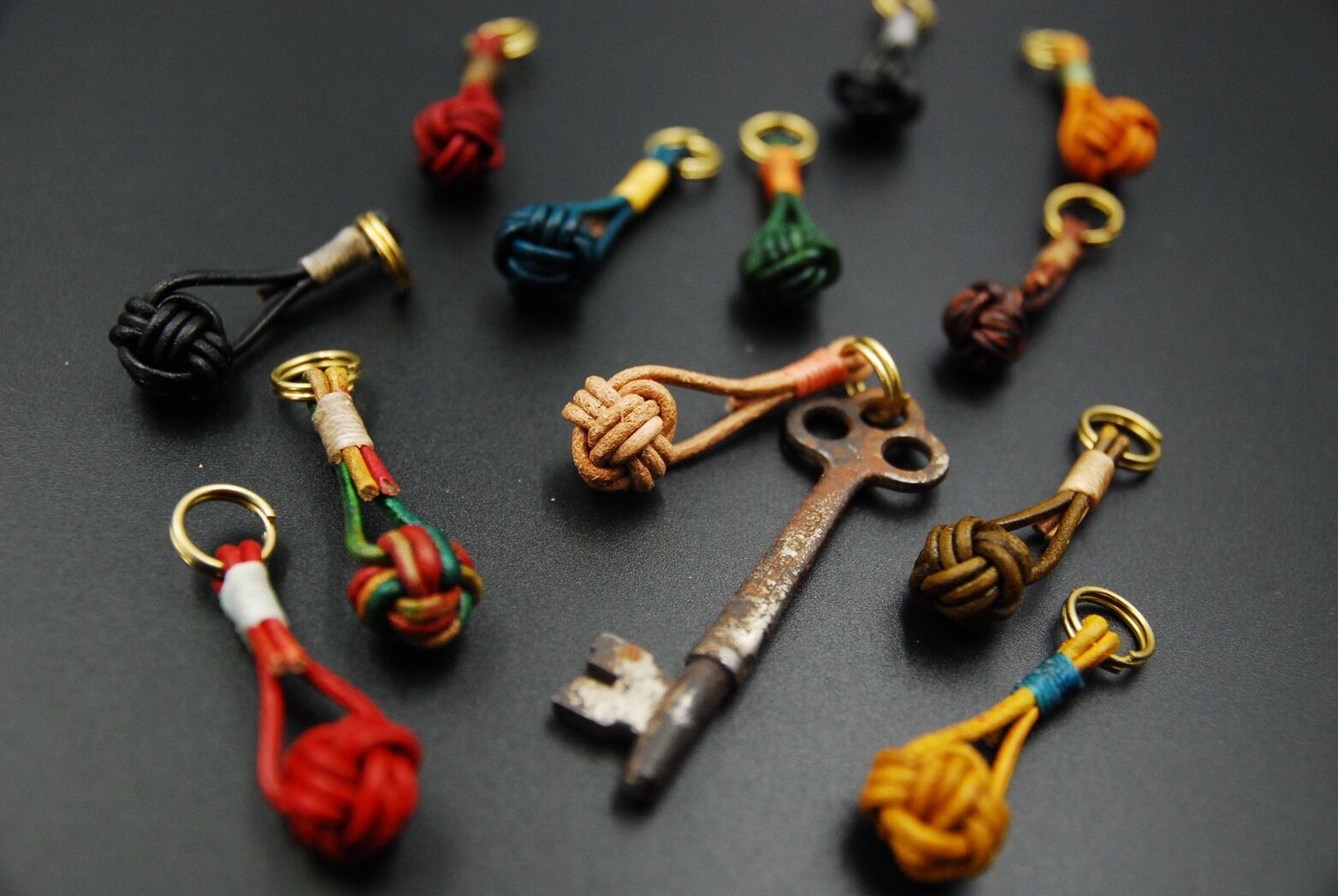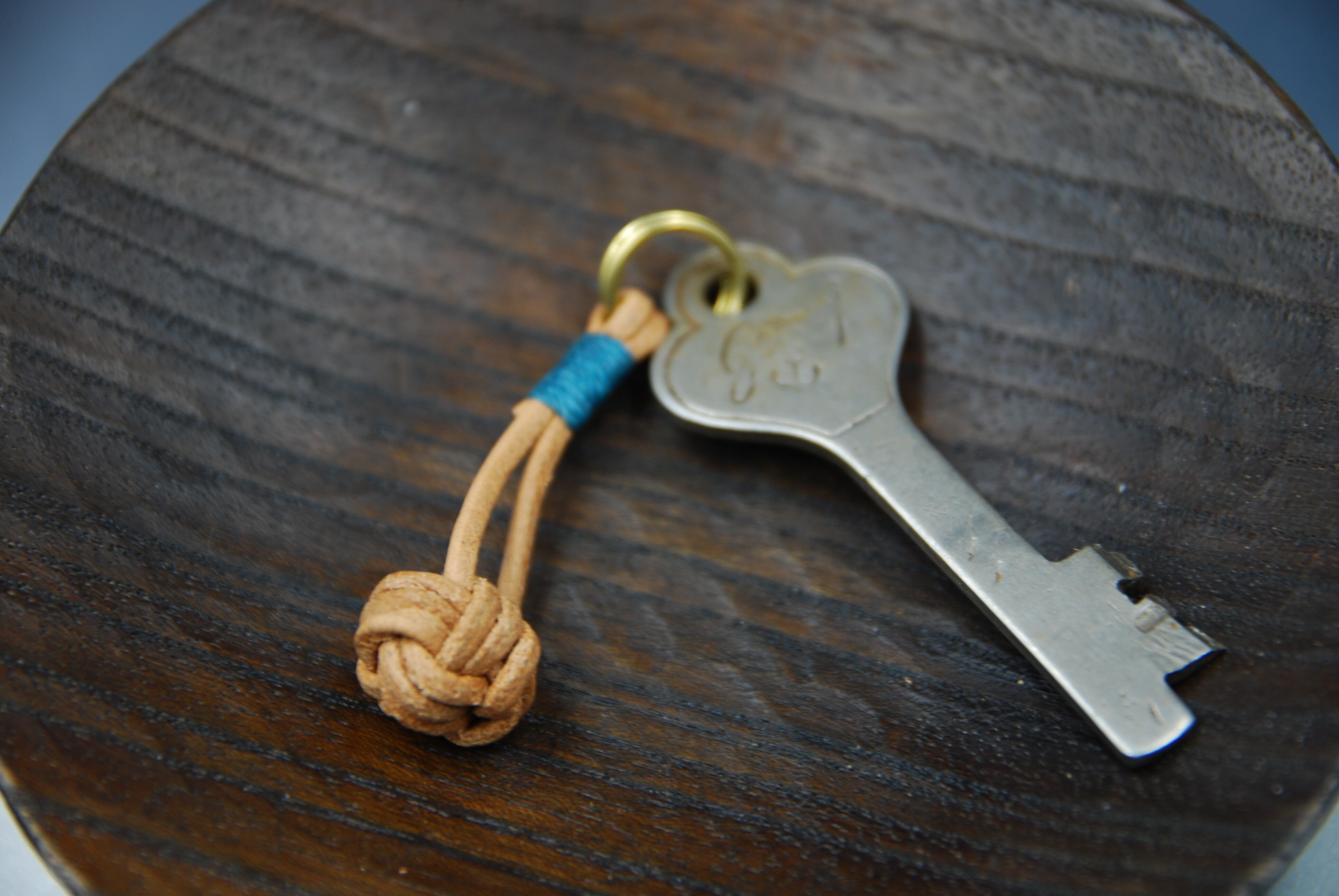 革の丸紐をモンキーノットという結び方で結んでいます。