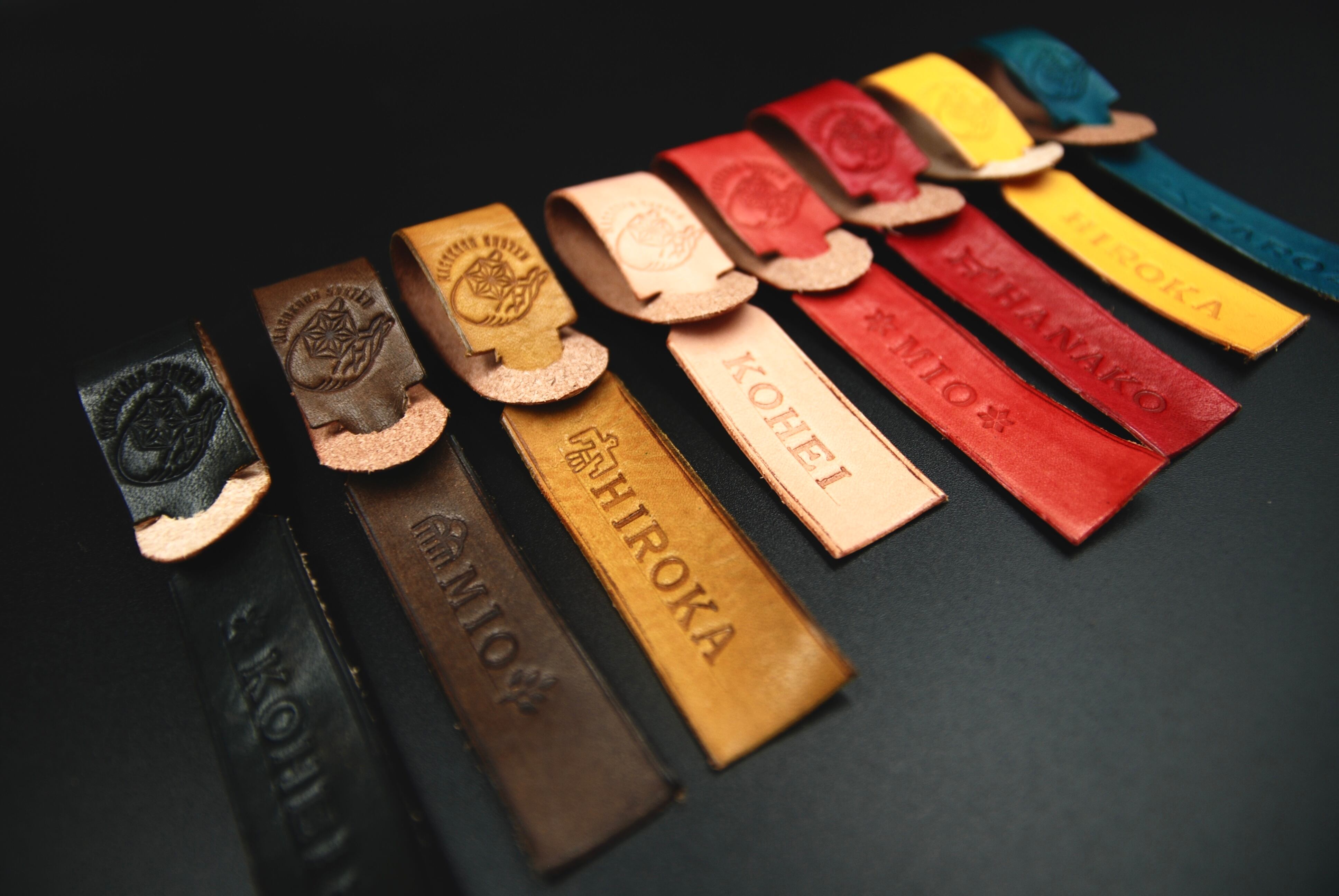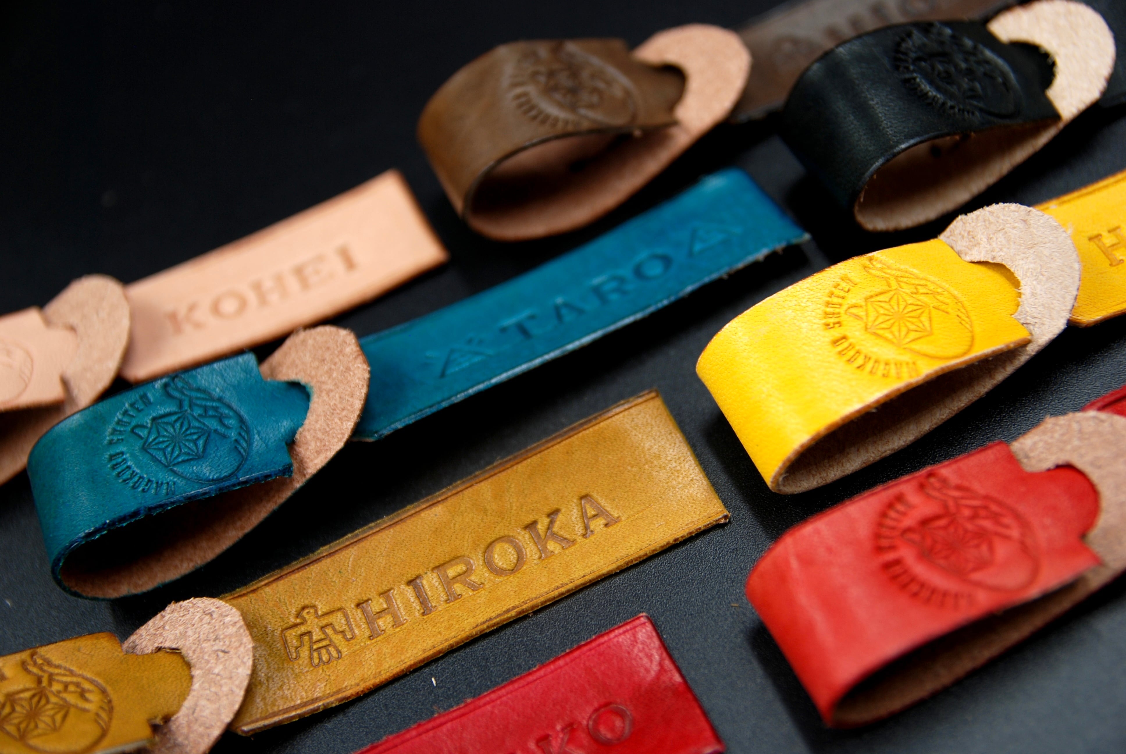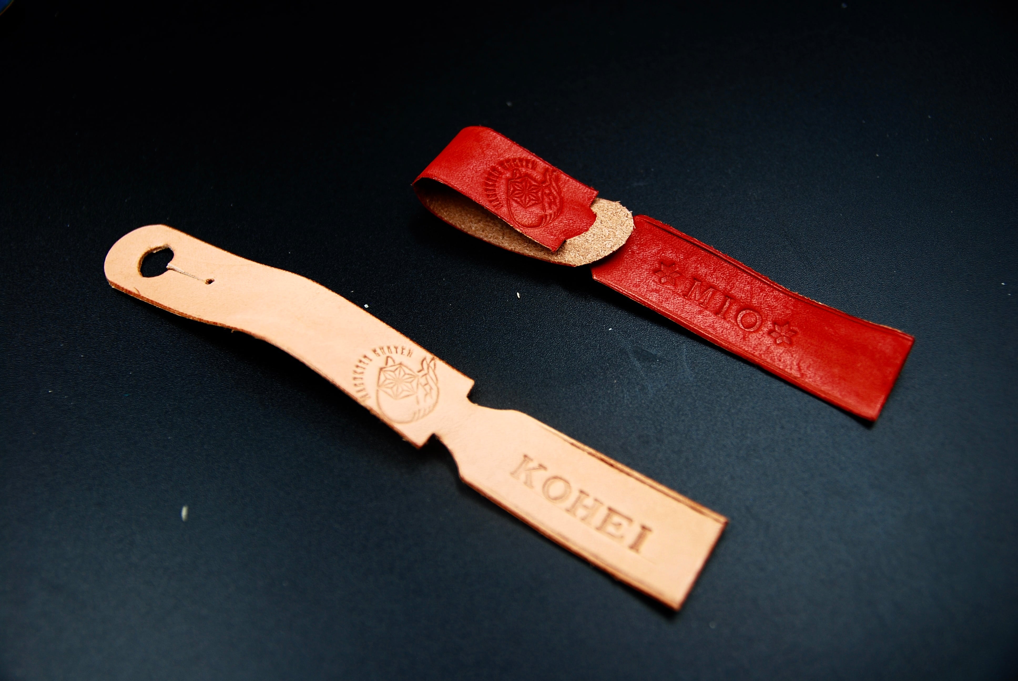 シンプルなデザインで、革のカラーや、刻印する文字も選べるので、老若男女問わず楽しくご利用いただけます。