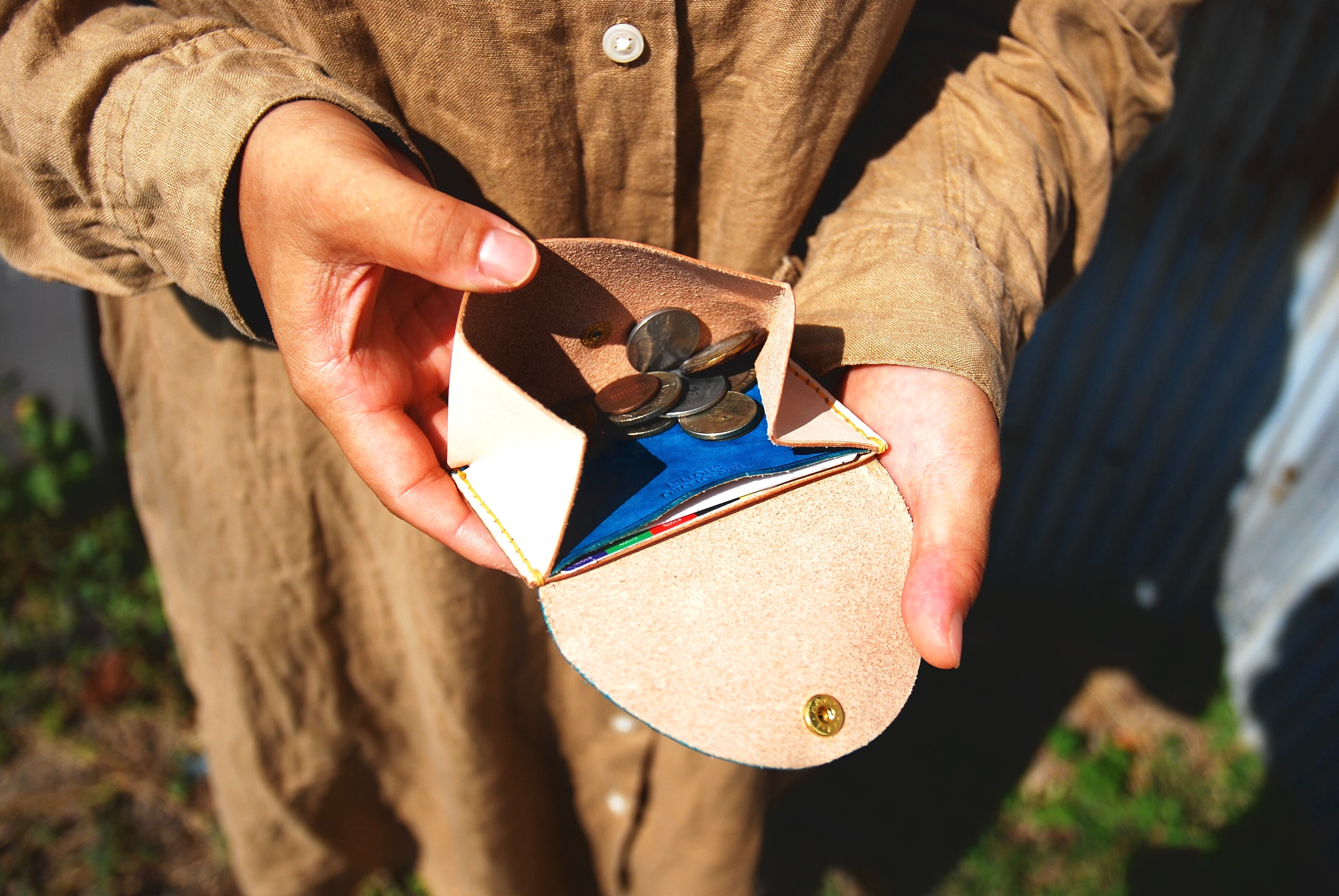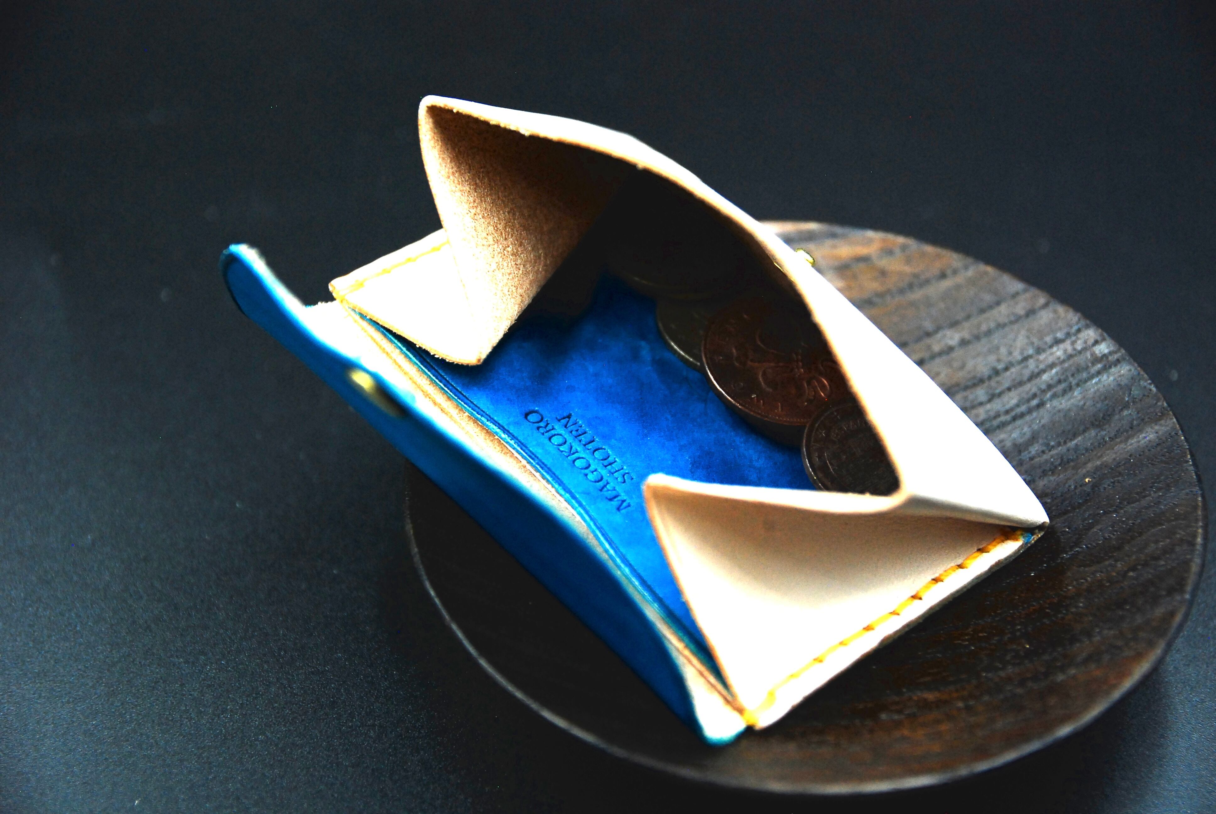 薄い革を使用しているので、手触りも柔らかく、写真2枚目の様に、コインもたくさん入ります。