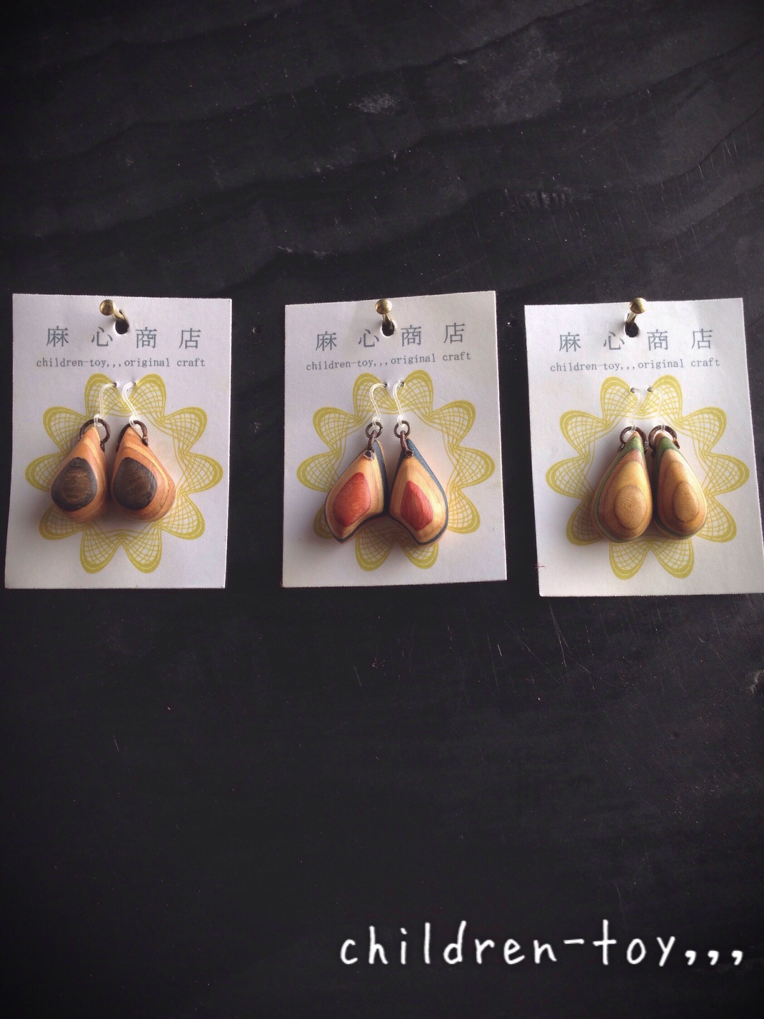 スケートボードの廃材から作ったピアスです。